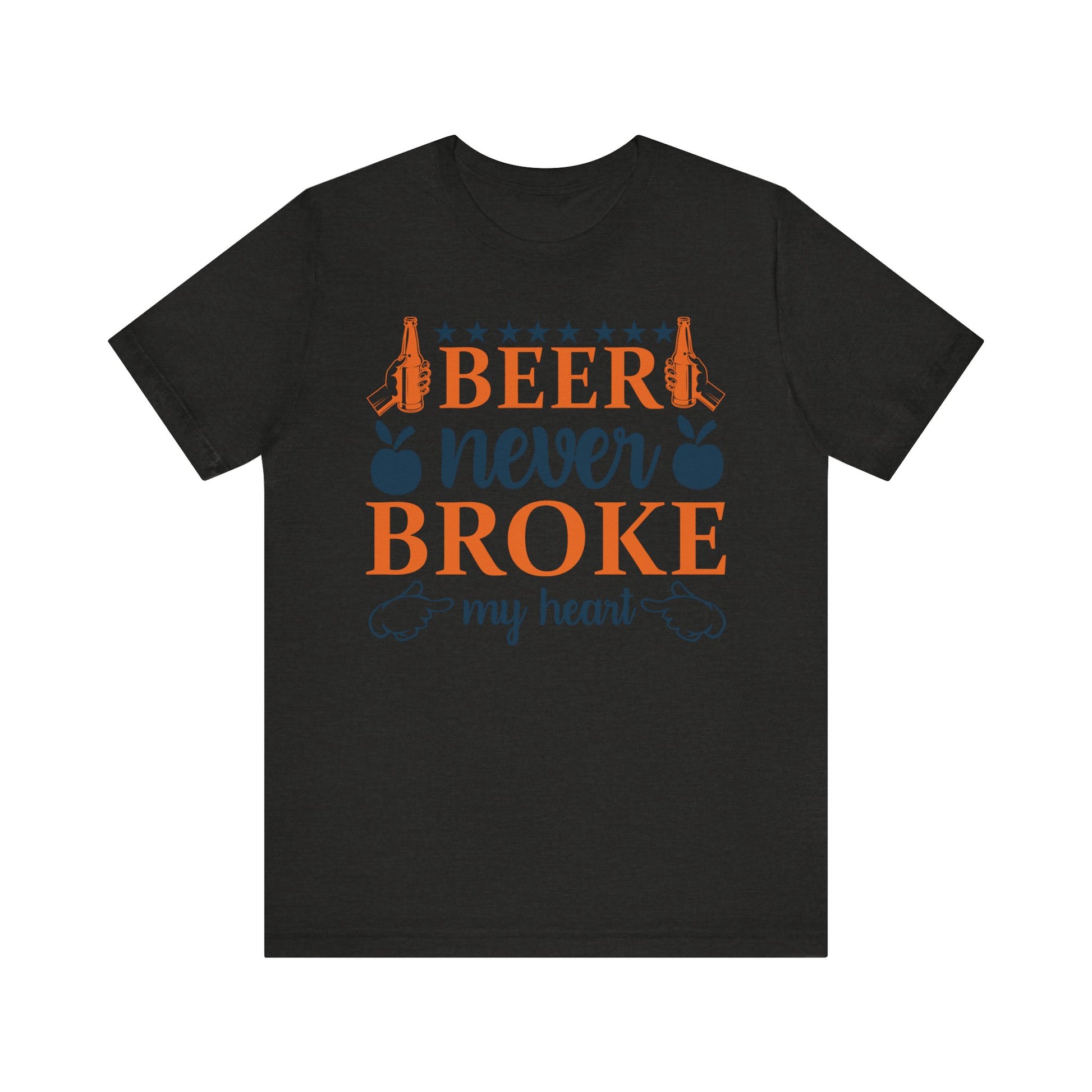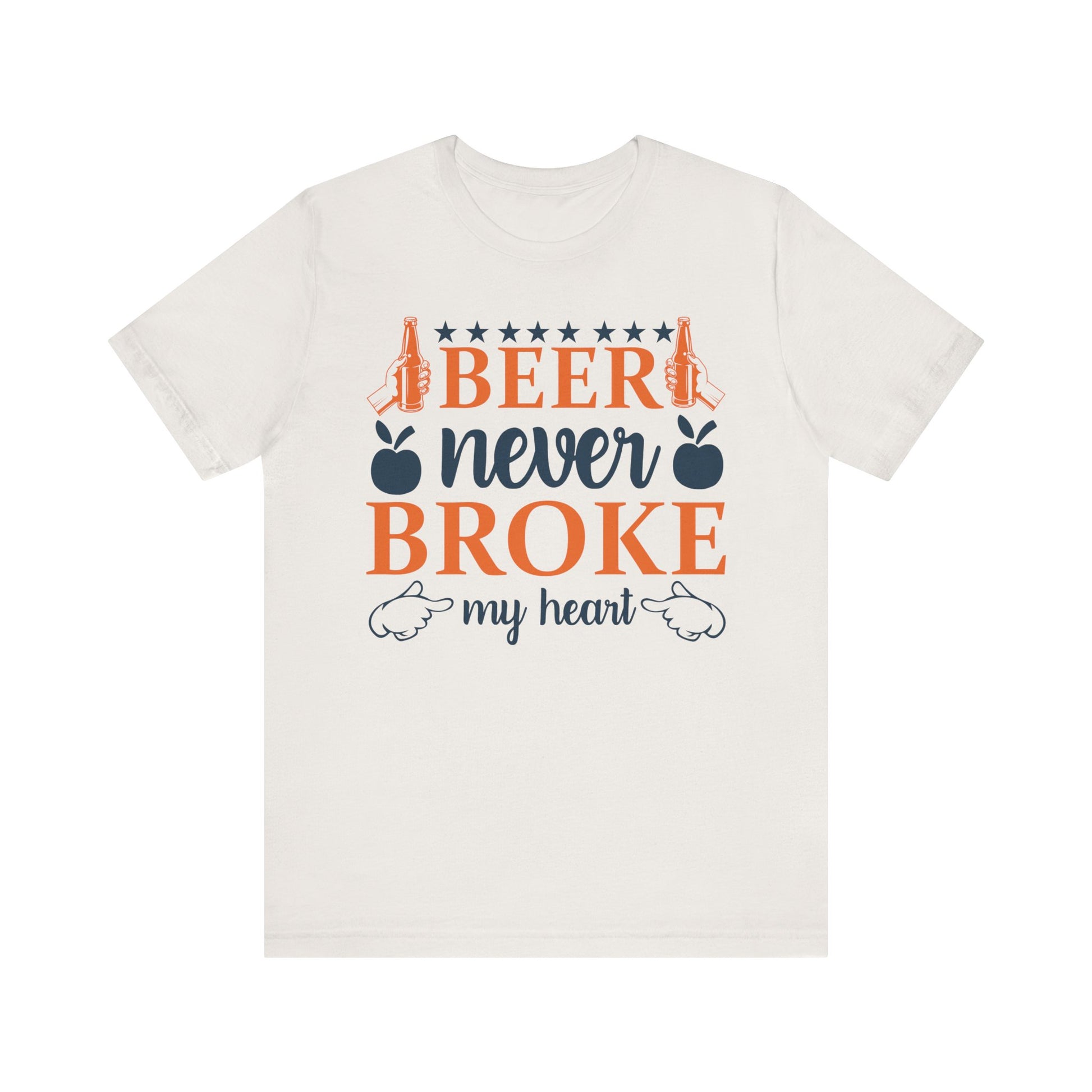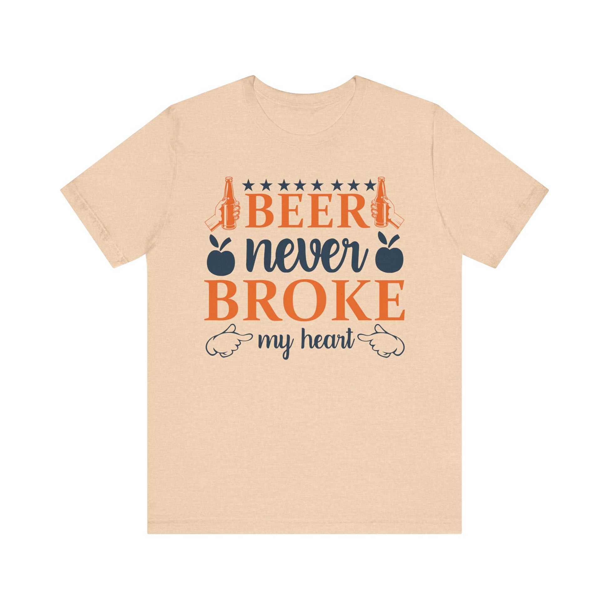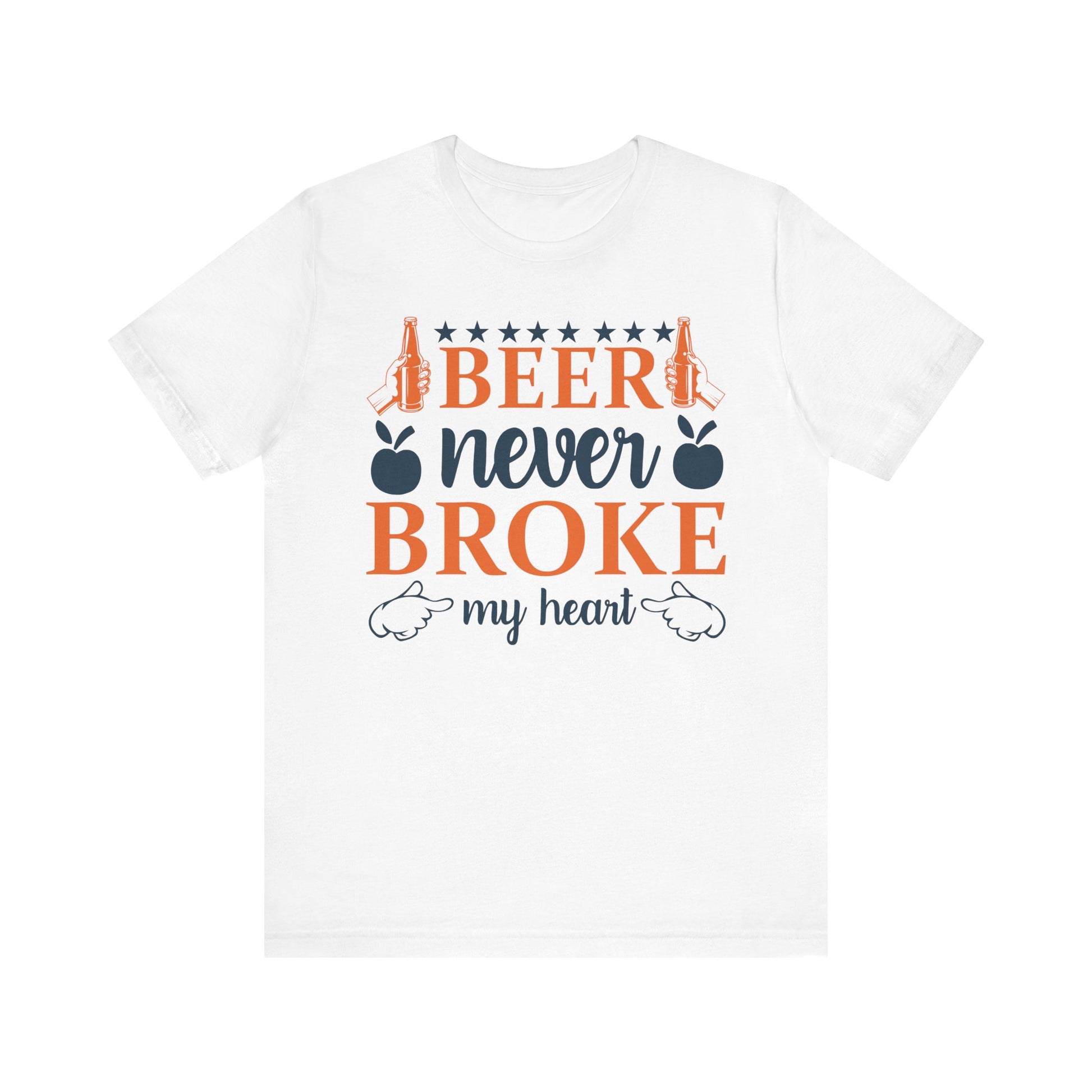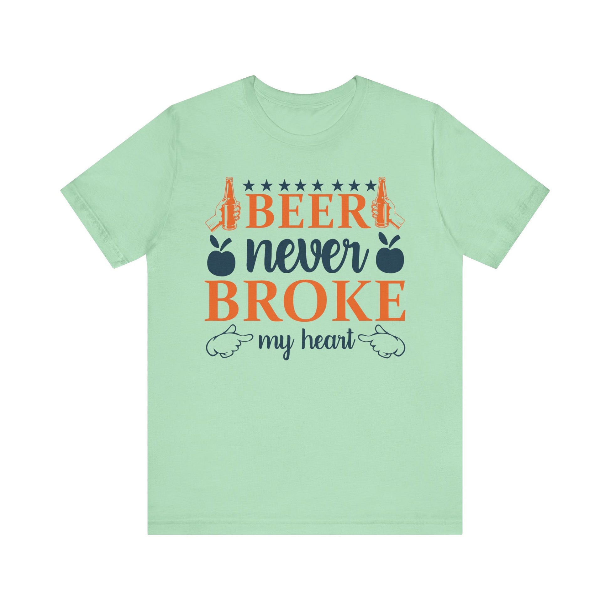 This T-shirt with the phrase 'beer never broke my heart' gives off a laid-back, casual vibe perfect for beer enthusiasts and music fans. It's a great addition to a weekend outfit or a relaxed night out with friends. Ideal for beer-related celebrations, music festivals, and casual hangouts.