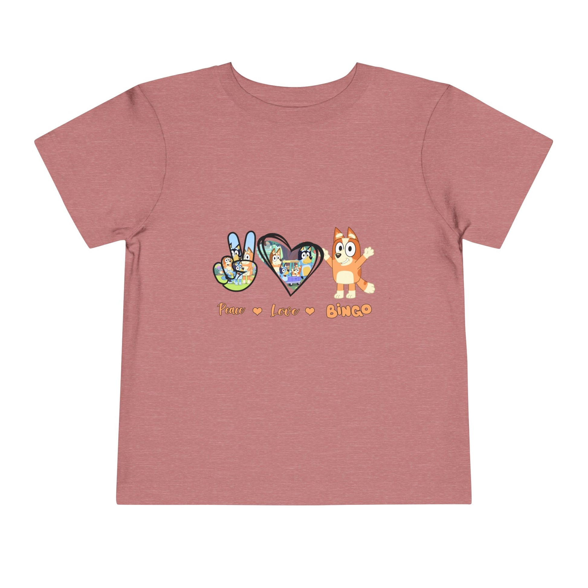 Bluey Toddler Tshirt, Peace Love and Bingo Shirt for Kids, Cute Bingo Player Tee, Fun Toddler Top, Gift for Toddlers, Bluey Fans Shirt