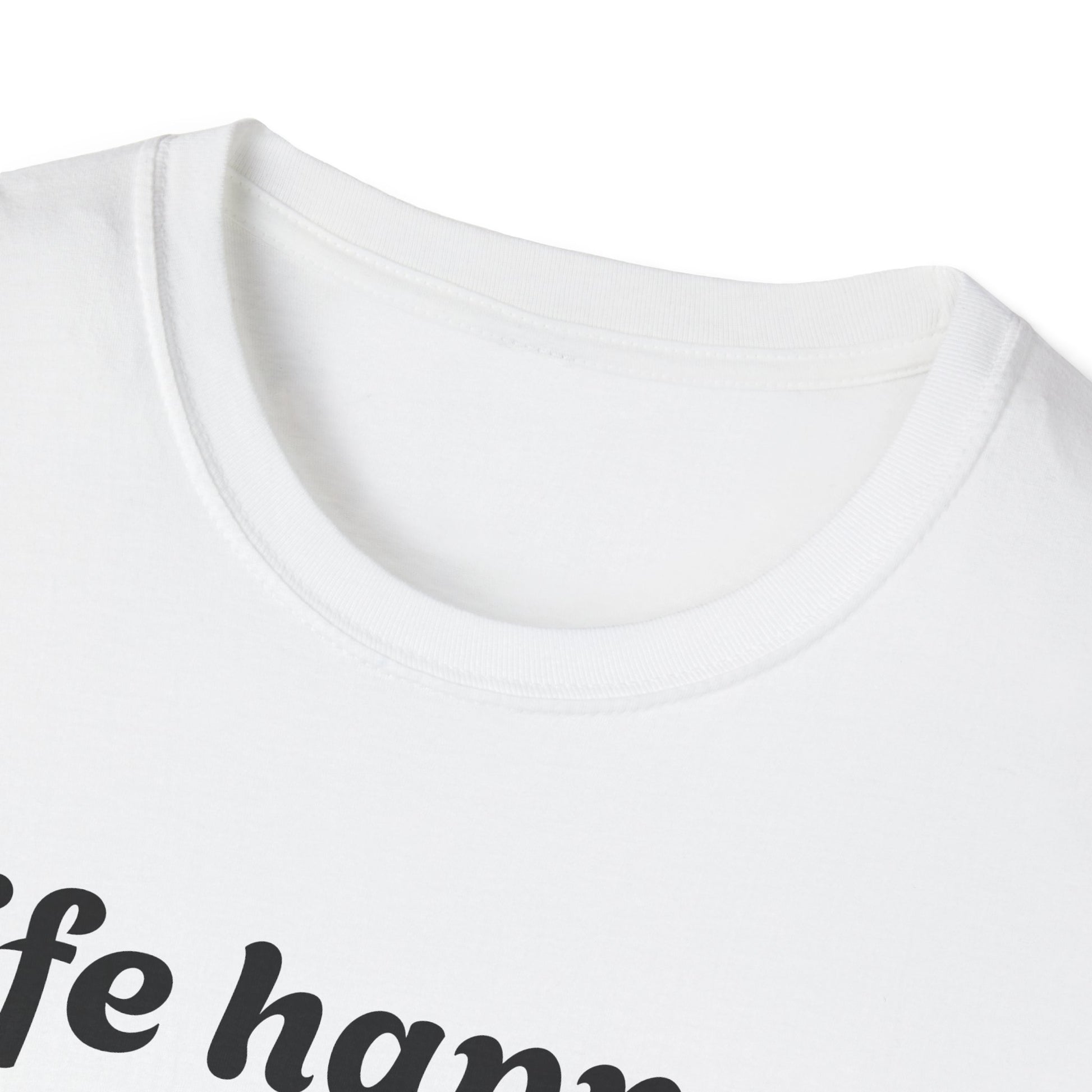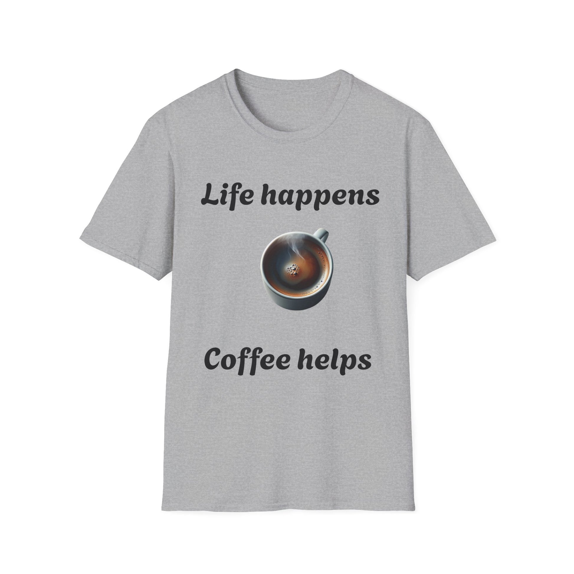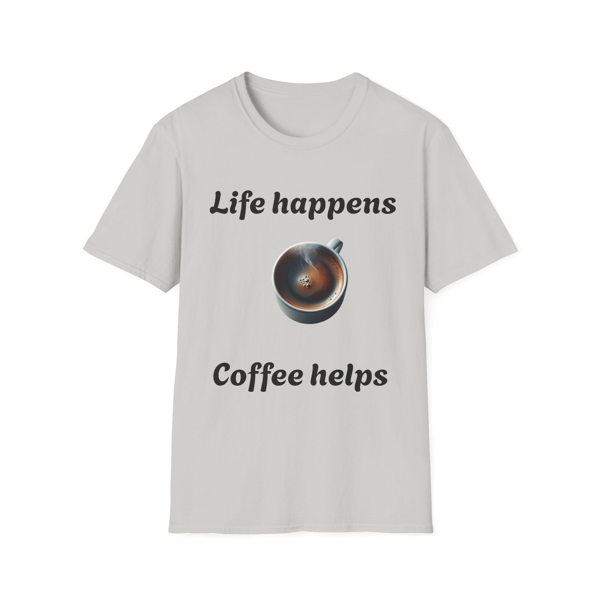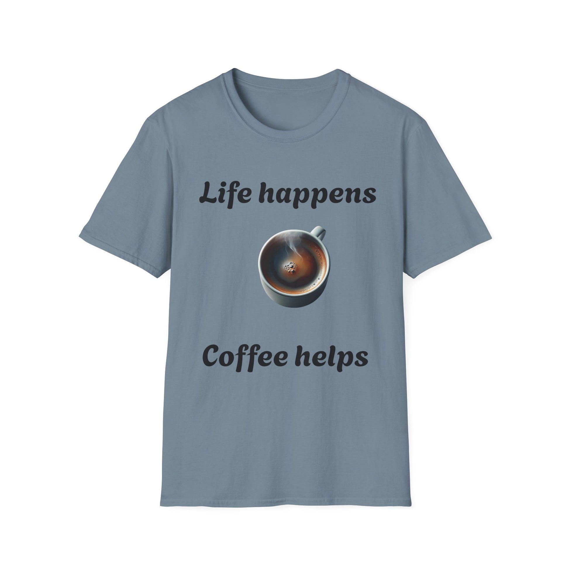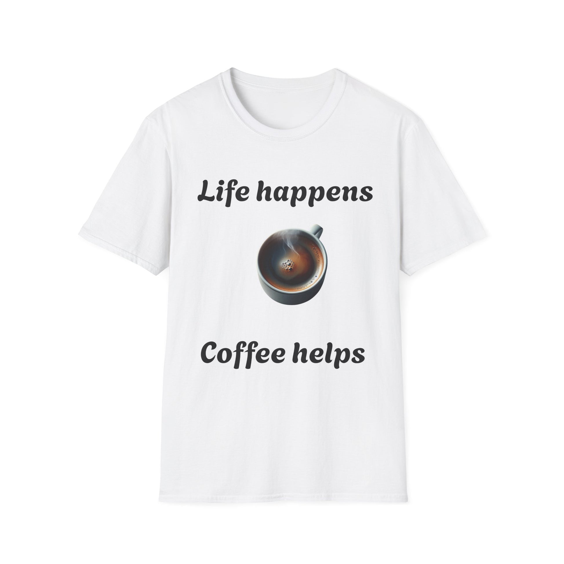 Coffee Lovers Unisex Softstyle T-Shirt, Life Happens Womans Tee, Graphic Tee, Funny Quote Shirt, Gift for Coffee Enthusiast, Coffee Lover