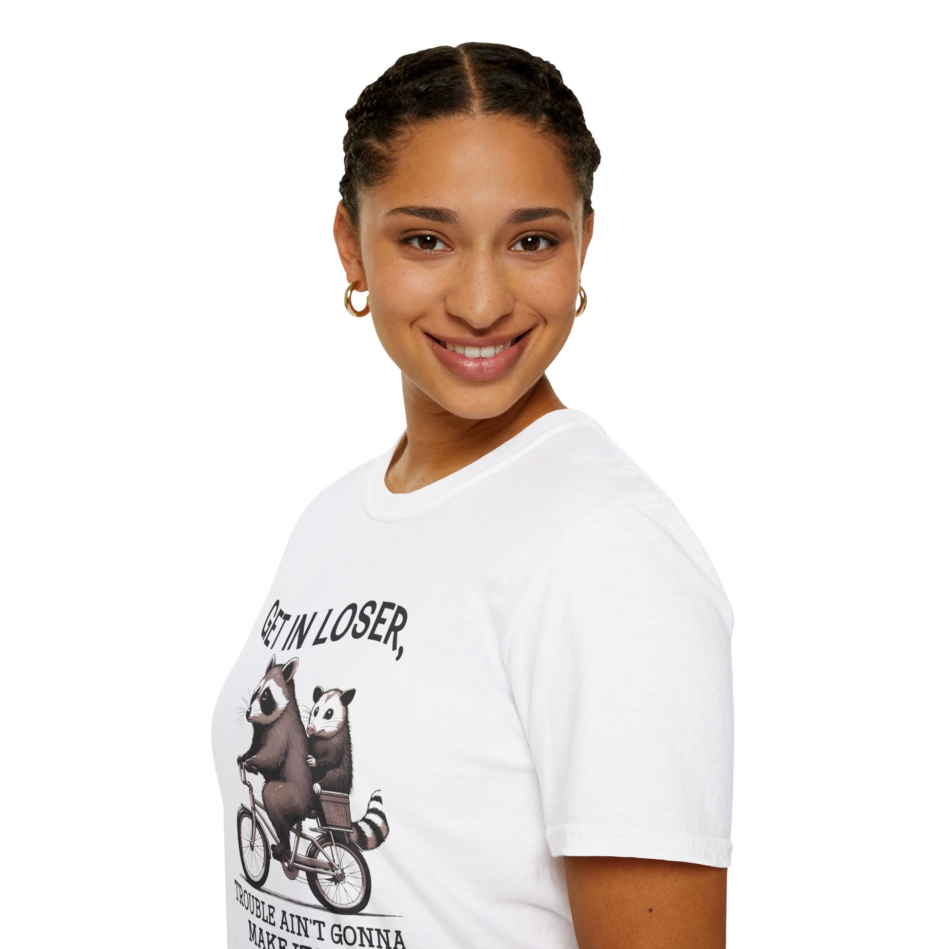 A classic and versatile T-Shirt featuring the phrase 'Get In Loser', perfect for casual wear or for making a statement. This shirt is made from soft and durable fabric, making it comfortable to wear all year round. Ideal for adults looking for a fun and trendy piece to add to their wardrobe. Great for gifting on birthdays, holidays, or for fans of the movie reference.