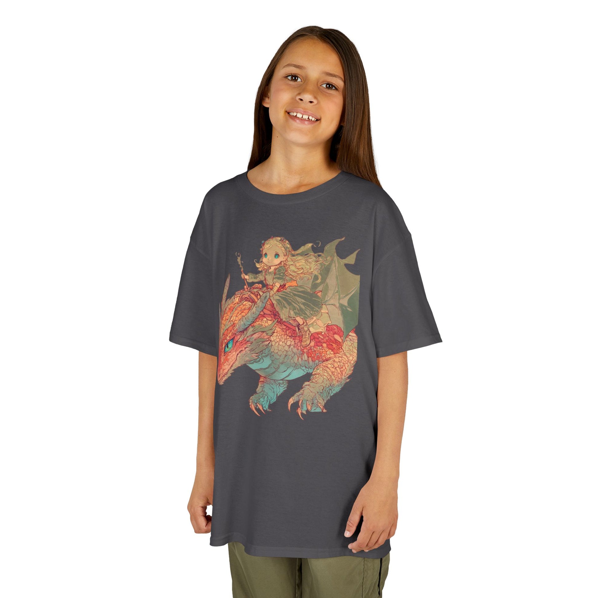 This Kids Tee features a charming design of a princess riding a dragon, perfect for young fantasy lovers. The shirt is made with 100% soft US cotton, making it comfortable for all seasons. The classic fit and crew neckline offer a timeless style suitable for daily wear, and the tear-away labels ensure a scratch-free experience. Ideal for kids who love fantasy themes and perfect for birthdays, playdates, and everyday wear.
