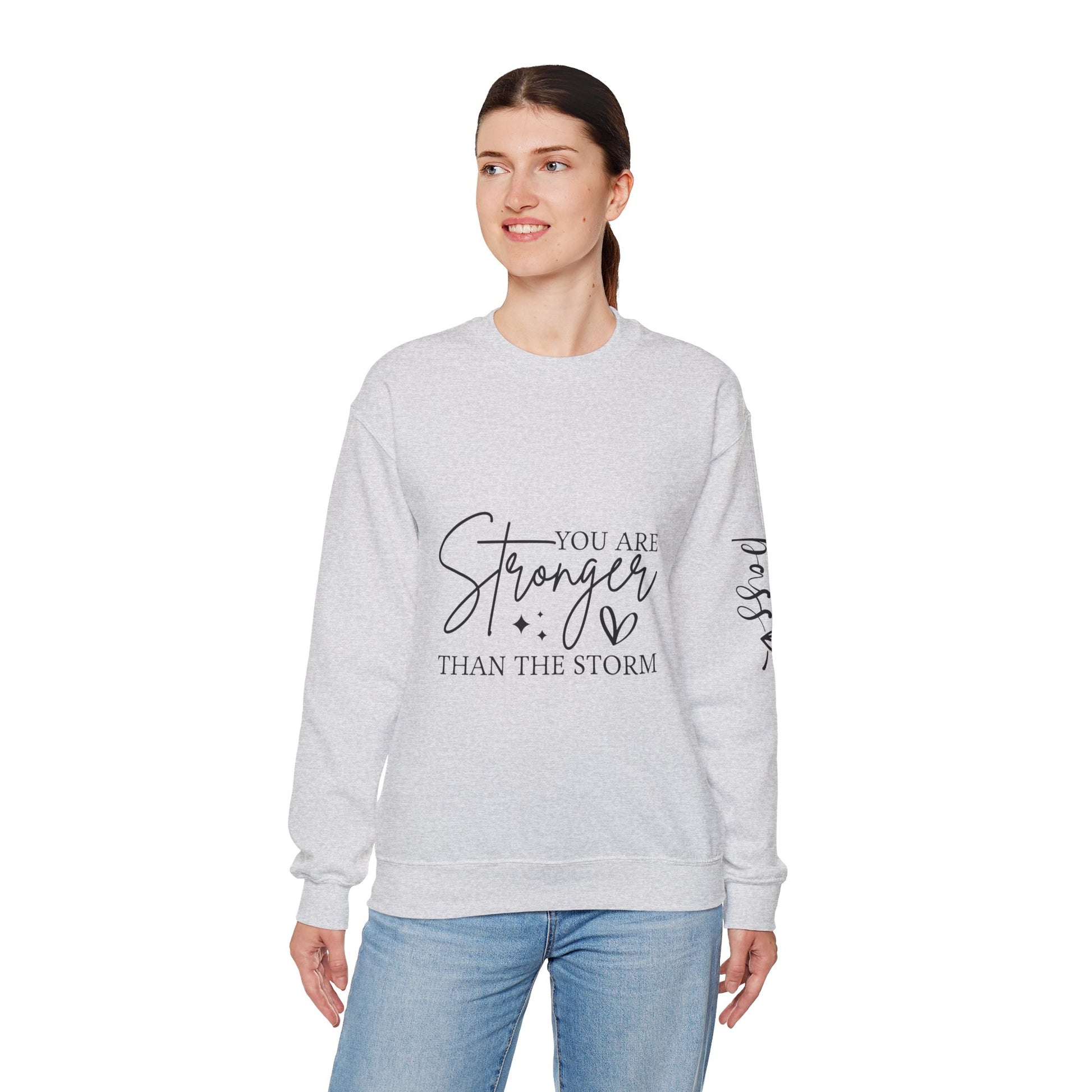 Stronger Than The Storm Crewneck Sweatshirt, Motivational Jumper, Inspirational Pullover, Cozy Sweater, Resilience Gift, Comfortable Top