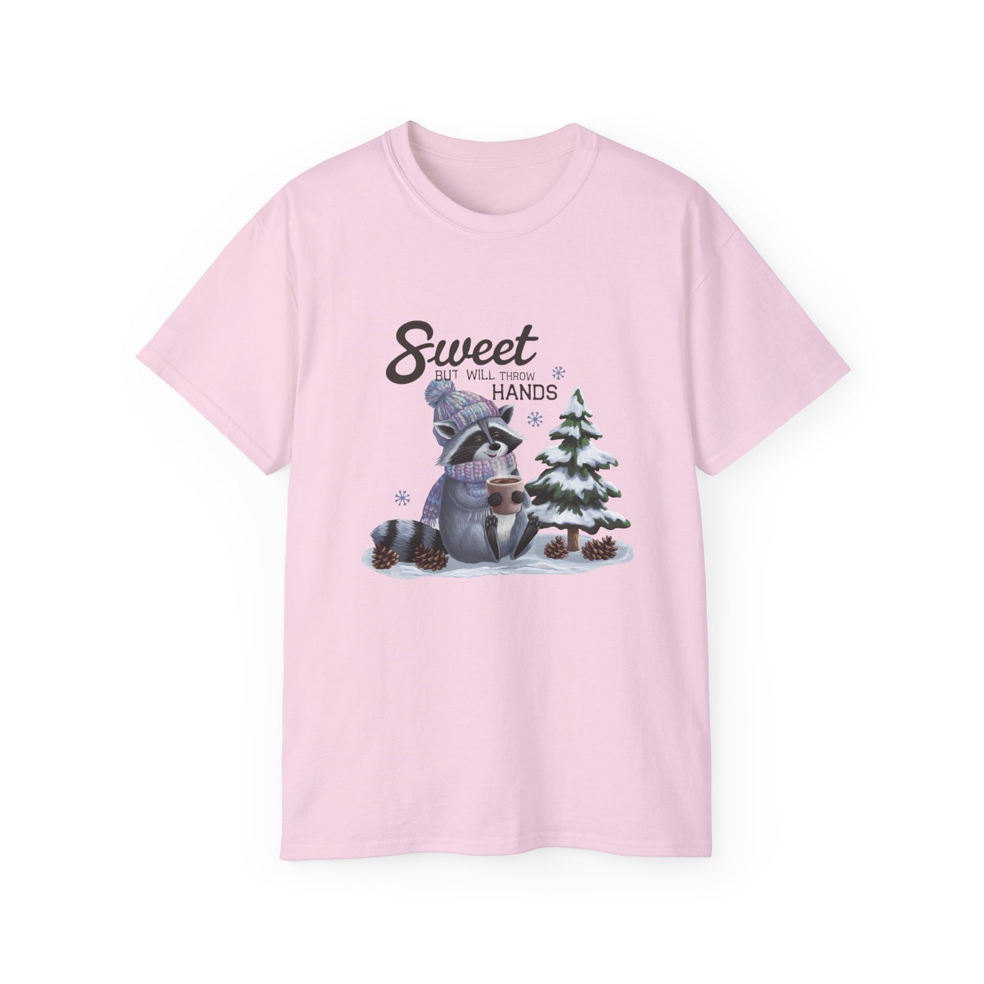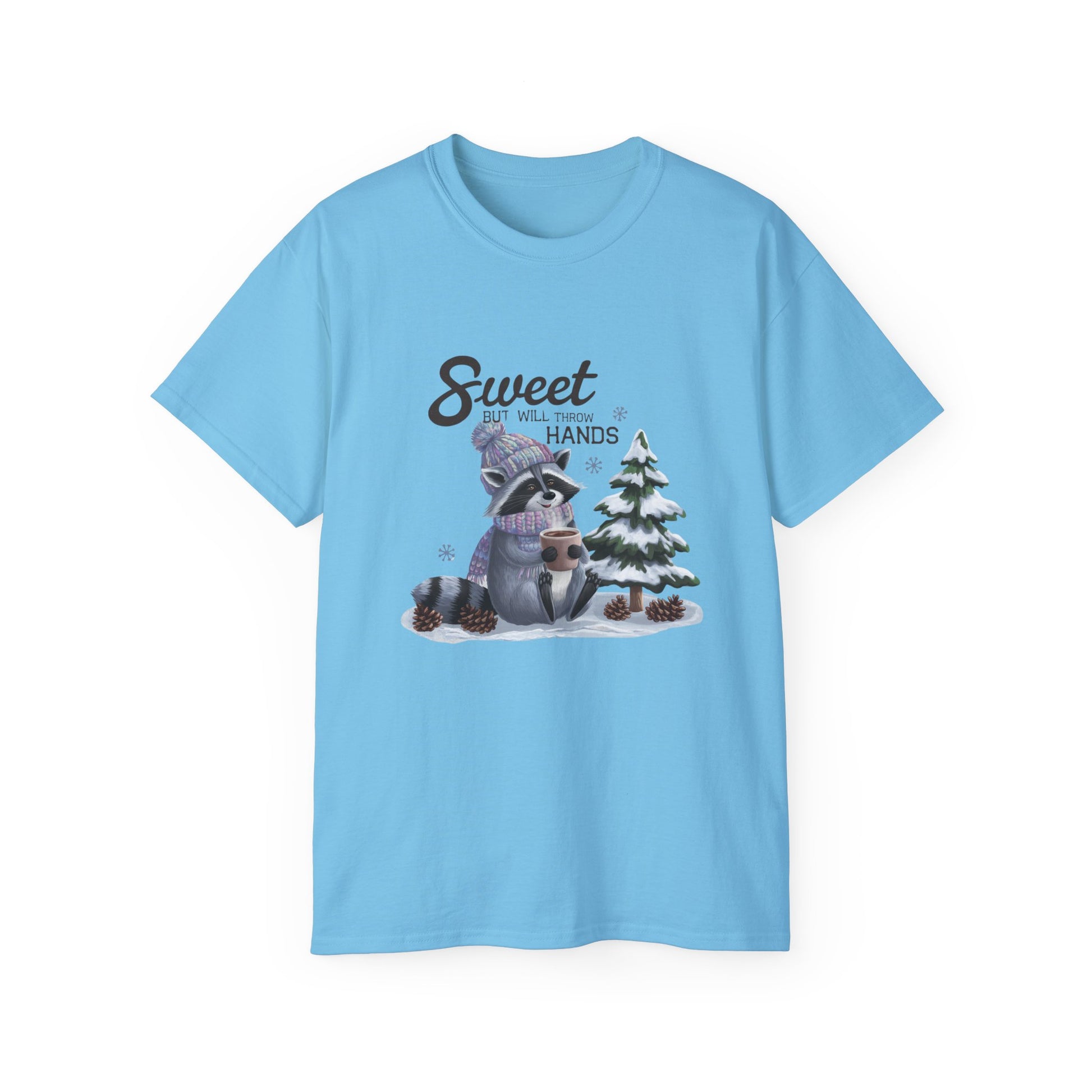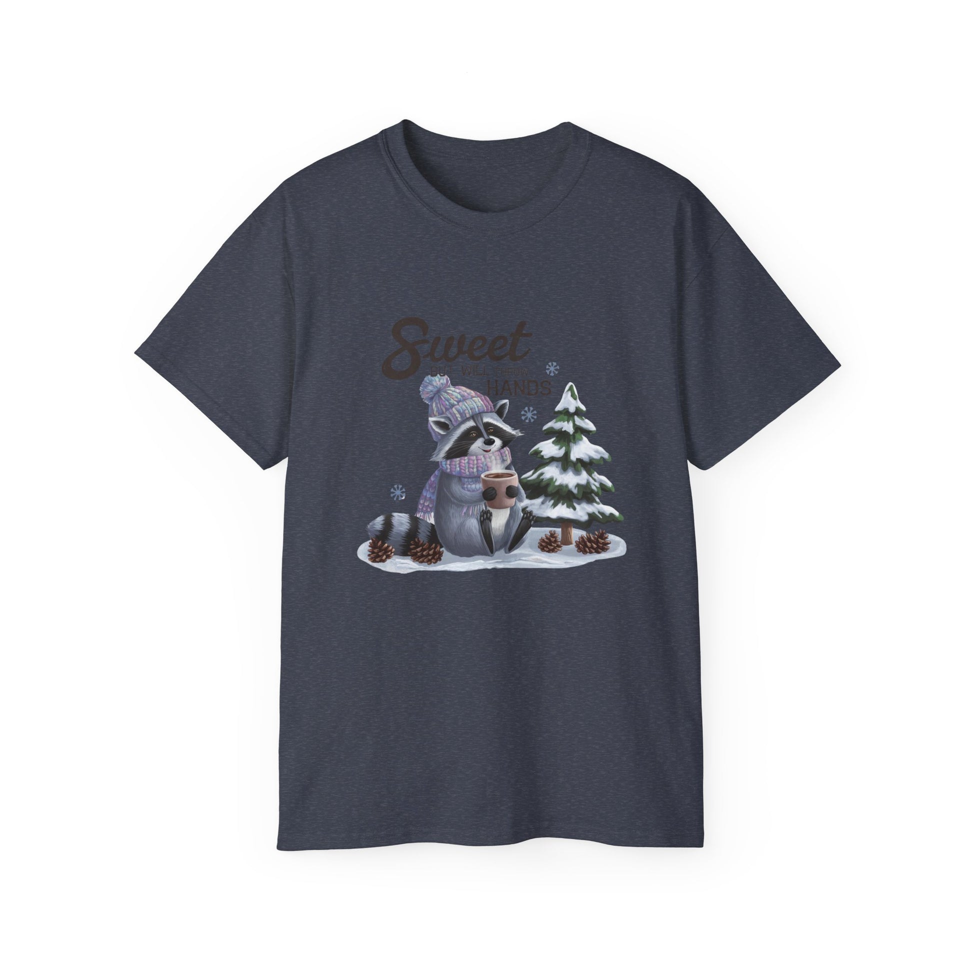 Winter Raccoon Cute Tshirt, Unisex Cotton Tee, Holiday Graphic Tee, Animal Lover Shirt, Gift for Him/Her